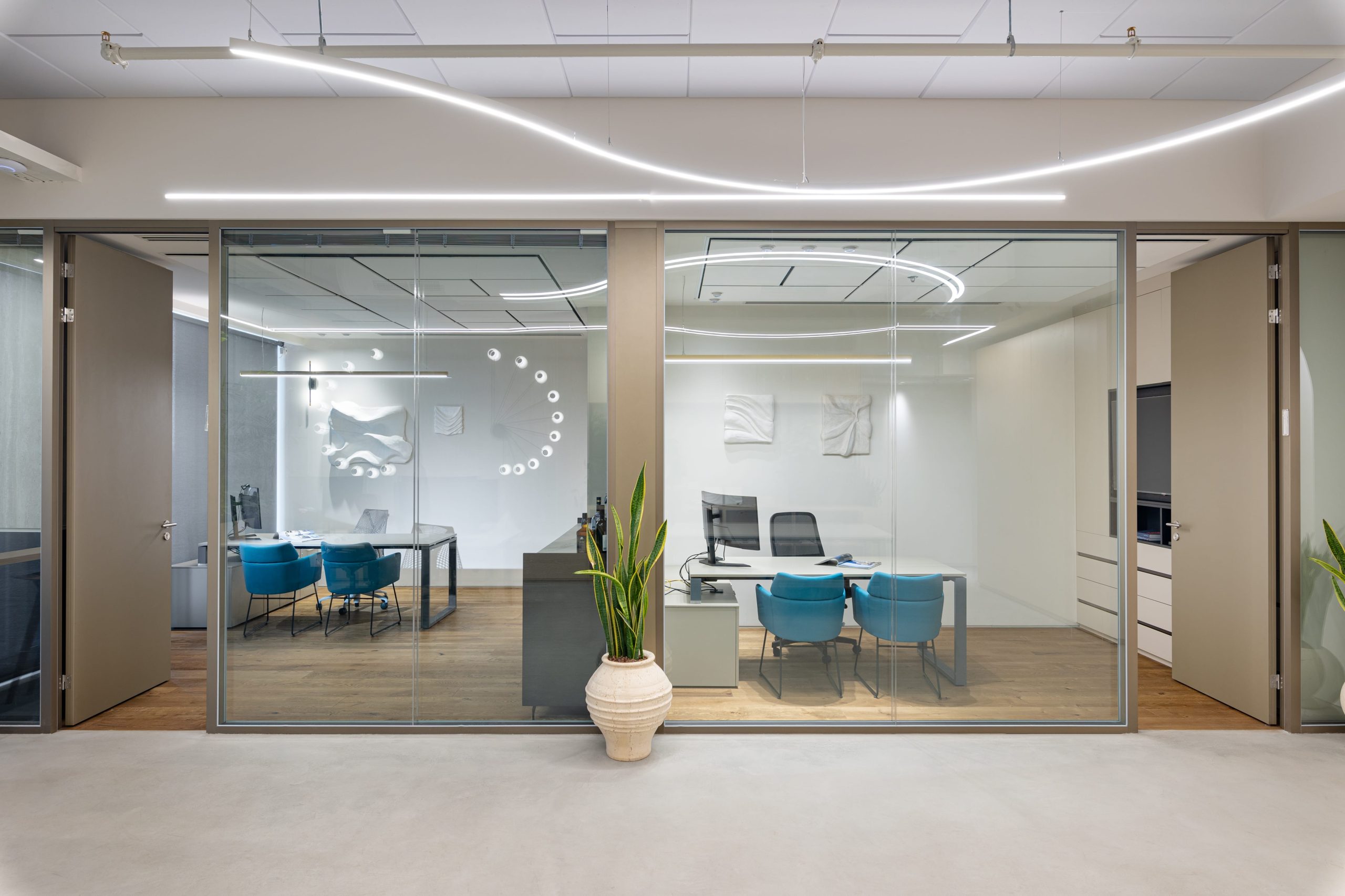 מורכב מחדרי ישיבות בגדלים שונים , משרדים וחללים ציבוריים , ריבוי חומרים וטקסטורות וחשיבה על כל פרט עיצובי ופונקציואלי ,