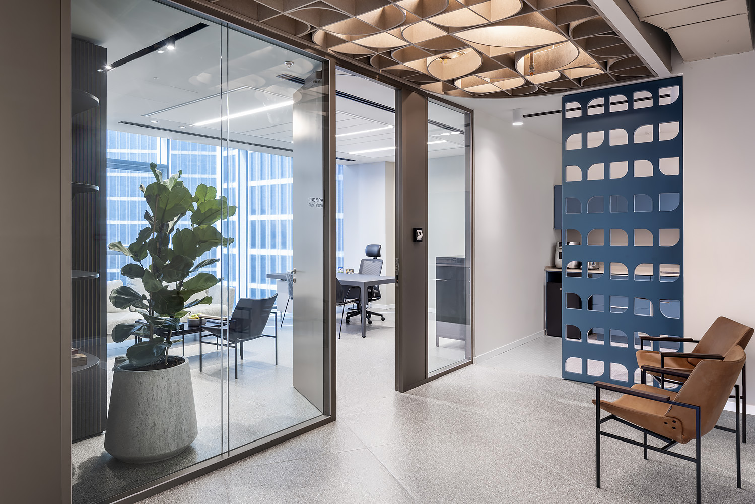 מחיצות רצפה תקרה בגוונים מיוחדים ונגרות מדהימה, כל זה יצר חלל נעים ונוח למשתמשים.