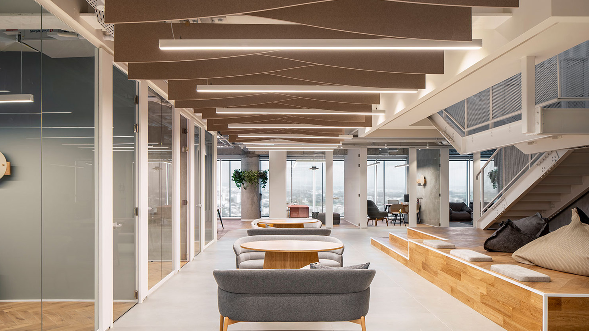 מתחם חללי עבודה משותפים עבור חברת SOK הבנילאומית , משתרע על קומה שלמה ומרפסת צופה לים ,