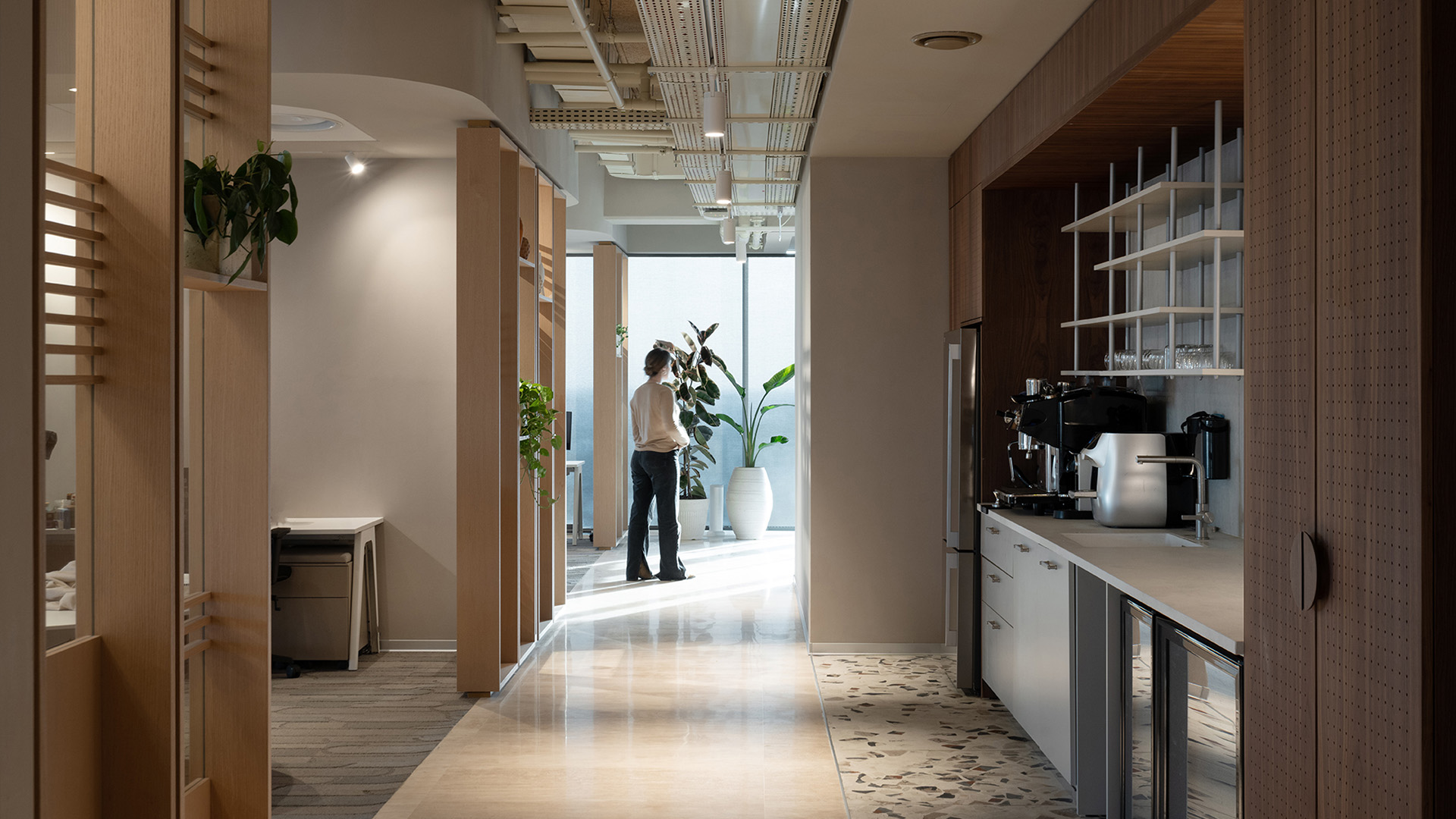 מחיצות רצפה תקרה בגוונים מיוחדים ונגרות מדהימה, כל זה יצר חלל נעים ונוח למשתמשים.